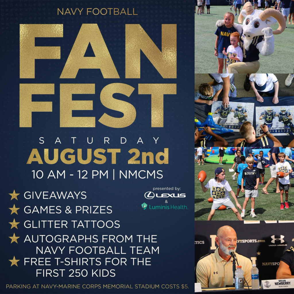 Hey, Annapolis families! If you’re looking for a fun (and free!) way to kick off August, we’ve got just the thing, the 2025 Navy Football Fan Fest & Media Day is happening this Saturday, August 2, and it’s going to be a blast!