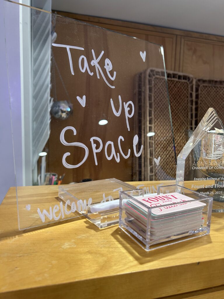 Tucked away in a gray building on Cathedral Street in Downtown Annapolis, you’ll find a bright, bold, and colorful suite filled with hardworking women and good vibes. This is Fount & Flourish, a co-working space, event venue, and social club created by Bailey Feldman, girl mom of three. She’s brought her experience in events, consulting, and leadership coaching to create a uniquely empowering space for the women of Annapolis.