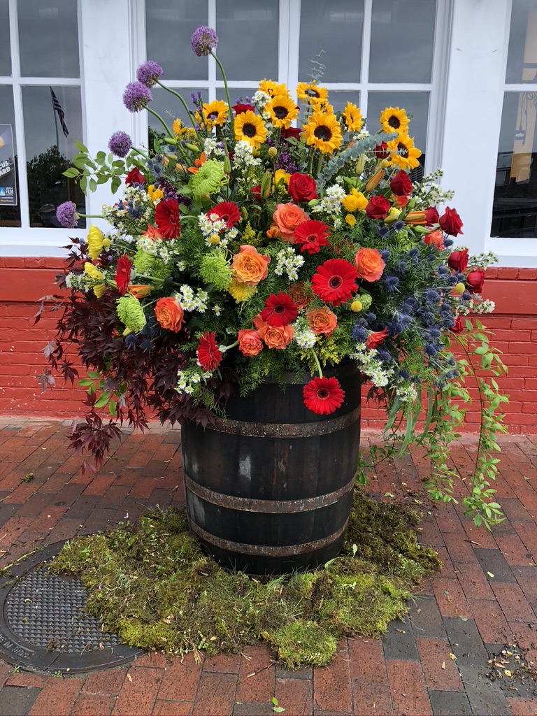 One of her largest displays, a whiskey barrel overflowing with 400 stems, became an impromptu photo spot that year. Huston watched from her car sobbing as people lined up to take photos with the barrel and get drinks. This year marks the sixth anniversary of her signature “Barrel of Blooms,” a love letter to Annapolis and its resilience.