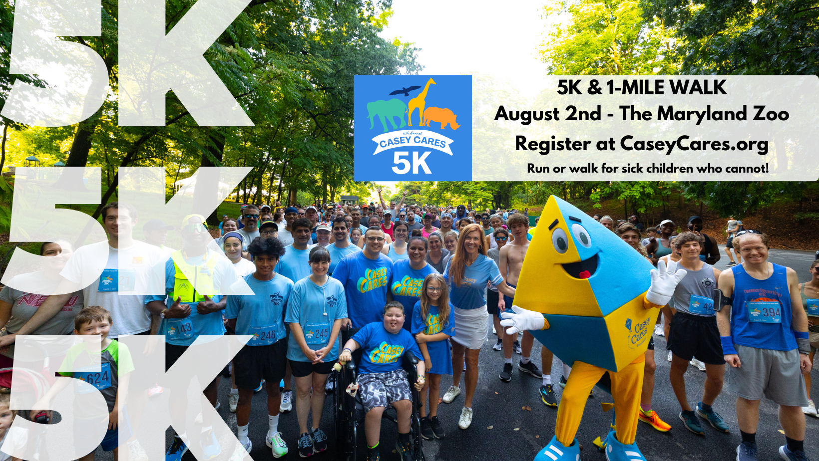 Lace up your sneakers and join Casey Cares for our 16th Annual 5K Run/1-Mile Walk on August 2nd at the Maryland Zoo in Baltimore! Proceeds will benefit thousands of critically ill children and their families. This chip-timed event includes a tech shirt, race bib, and finisher medal for all participants. Whether you’re a runner or walker, we’d love to see you at the start line. Gather your family and friends and sign up today.