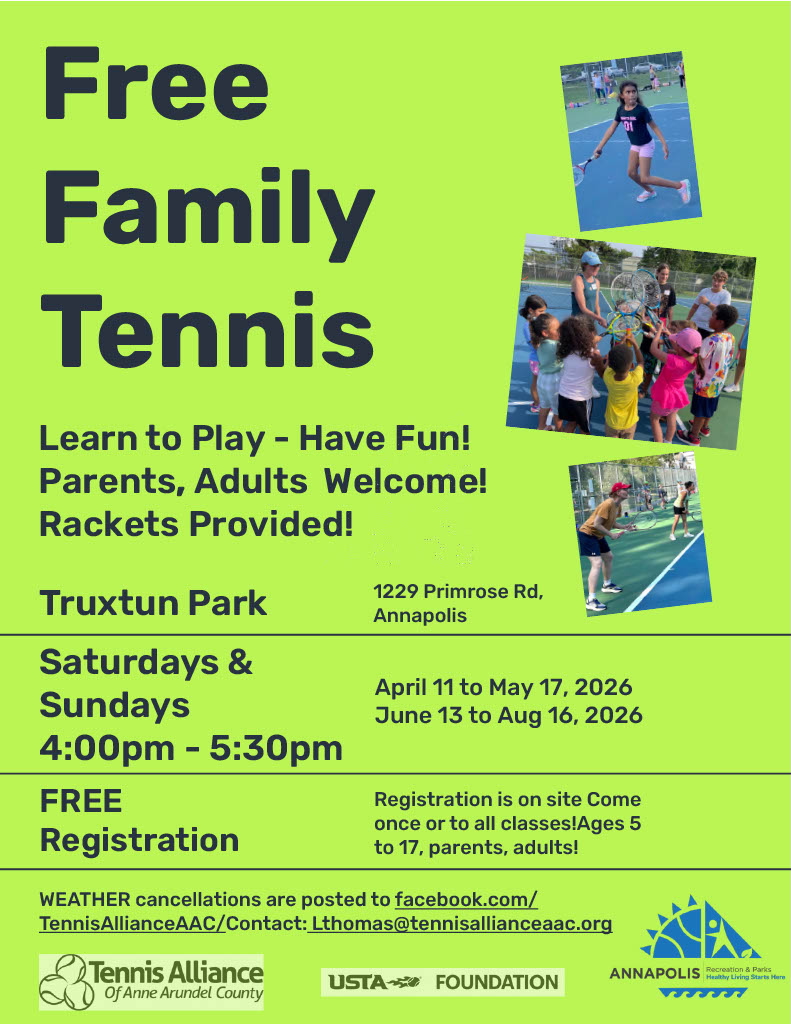 Come out to learn to play tennis! For ages 5 to 17, parents, and adults! Beginner lessons and fun games for all!