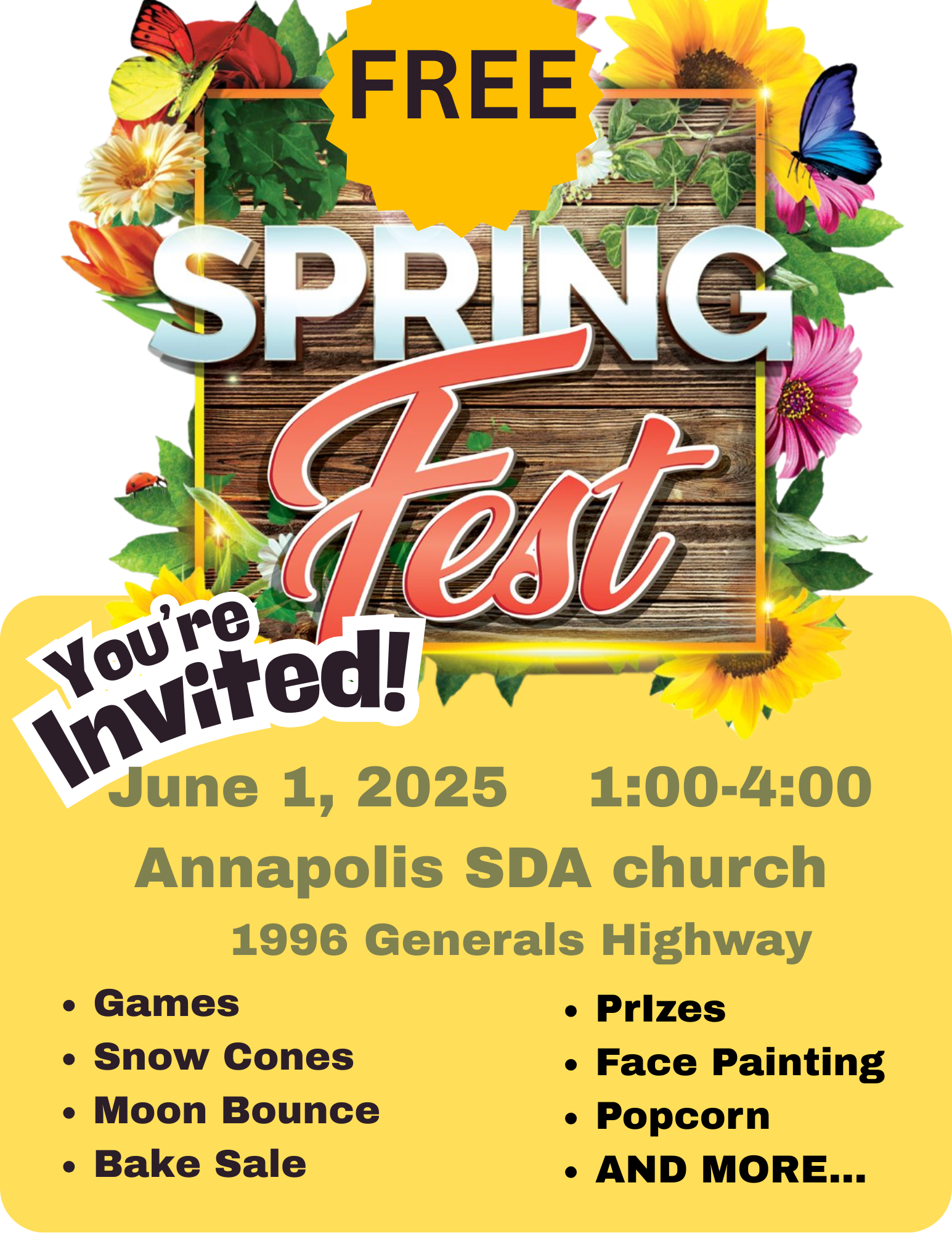 « All Events This event has passed. Spring Fest June 1 @ 1:00 pm - 4:00 pm Free « Kids-n-Kaboodle Summer Sunset Concert Series » Don’t miss this free Spring Fest! There will be games, food, a moon bounce, a bake sale, face painting, and more! It will take place at the Annapolis SDA Church. Share on FacebookTweetFollow us Add to calendar Google Calendar iCalendar Outlook 365 Outlook Live Details Date: June 1 Time: 1:00 pm - 4:00 pm Cost: Free Event Categories: Activities, Festival, Food, Kids Activities Event Tags:face painting, Family Friendly, Festival, Food, kids activities, moon bounce, SDA, Spring Website: https://www.facebook.com/photo/?fbid=1085558353618878&set=pb.100064941690160.-2207520000 Organizer Annapolis SDA Church Phone (410) 266-8887 View Organizer Website Other Who Should Go? Toddlers, Kids, Pre-Teens, Teens, Adults, Family Friendly Name of User Adding Event Jessica Grady Email of User Adding Event jmlittle3@gmail.com Venue Annapolis SDA Church 1996 Generals Highway Annapolis, United States + Google Map View Venue Website Related Events Holiday Traditions Tour December 5 @ 4:00 pm - 5:00 pm North Pole Lights Walk December 5 @ 4:30 pm - 8:00 pm Holiday-Themed Turkish Marbling: Ornaments, Cards, Gift Tags December 5 @ 6:00 pm - 8:00 pm