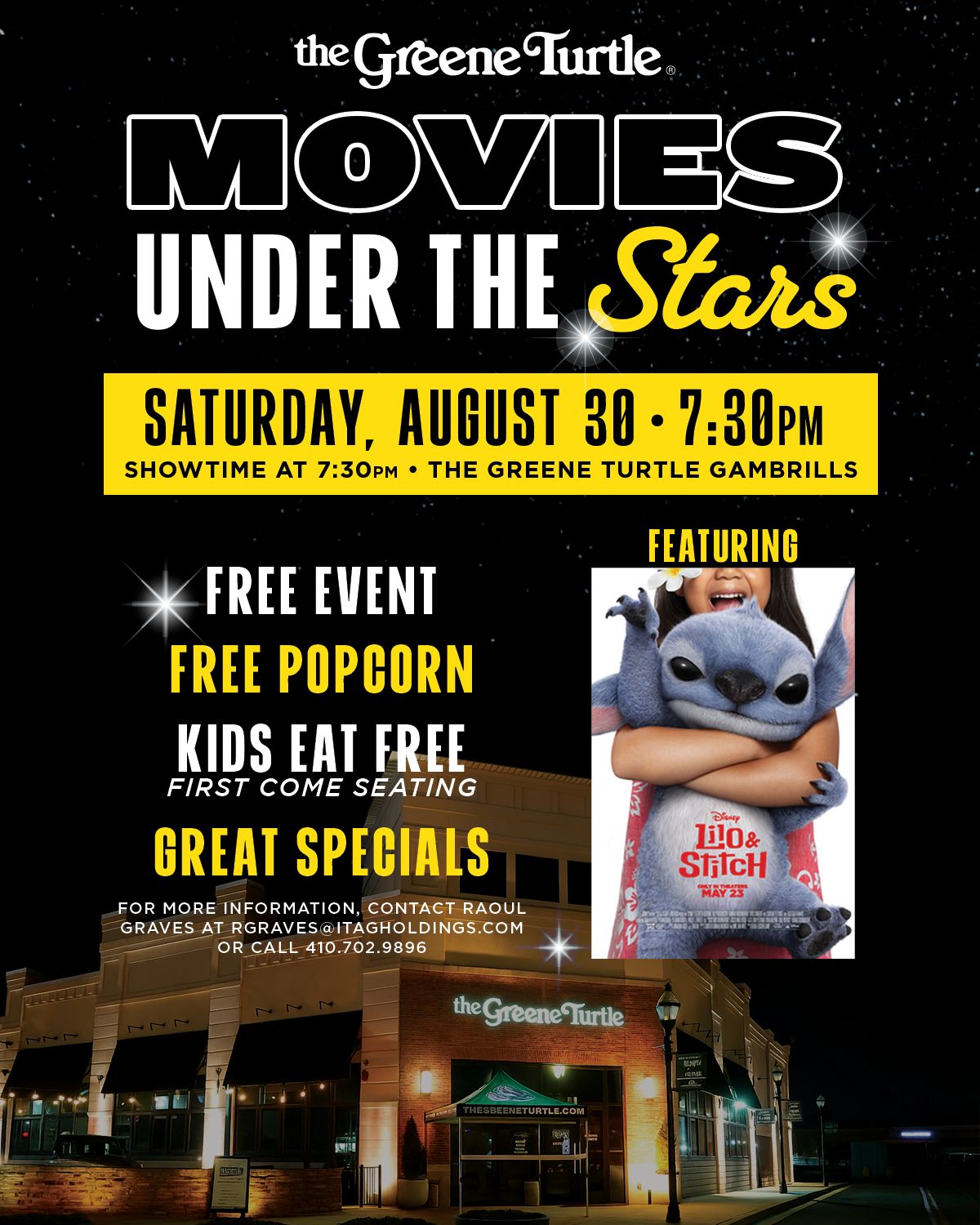 We’re rollin’ out the big screen at The Greene Turtle Gambrills for an epic night under the stars 🌟