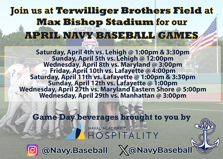 Join us at Terwilliger Brothers Field at Max Bishop Stadium for Navy Baseball as they take on Maryland! Game day beverages brought to you by Naval Academy Hospitality.