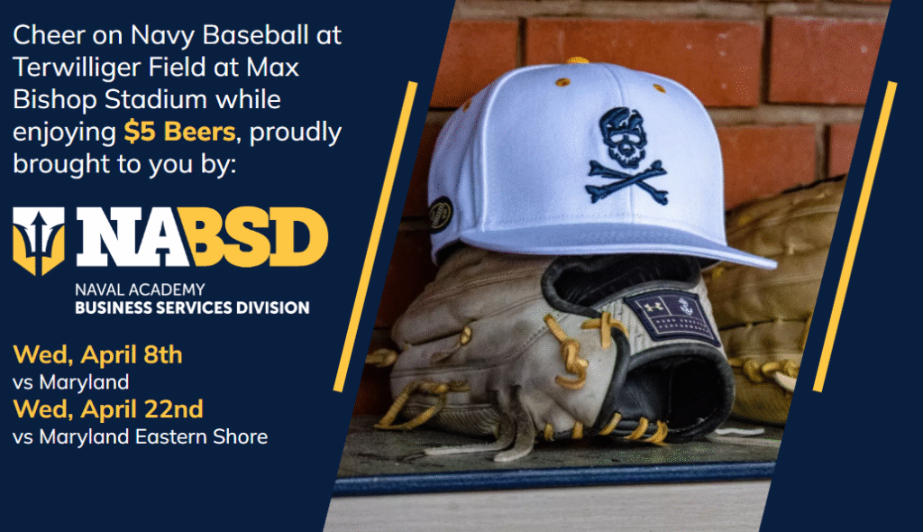 Join us at Terwilliger Brothers Field at Max Bishop Stadium for Navy Baseball as they take on Dartmouth! One game on Friday, March 6, a double-header on Saturday, March 7, and one game on Sunday, March 8. Game day beverages brought to you by Naval Academy Hospitality.