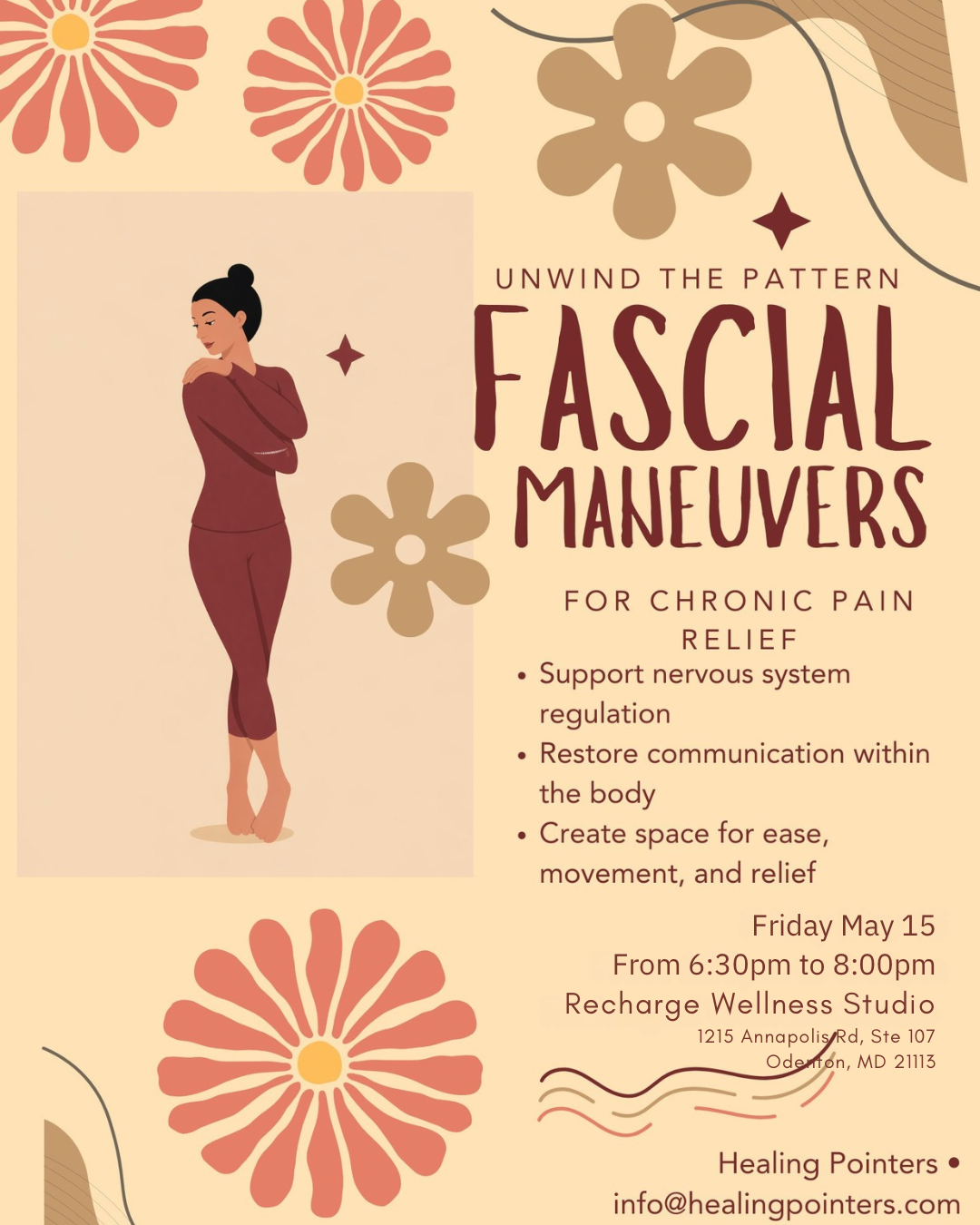 Through guided spiral fascial maneuvers, breath, and somatic awareness, you’ll be led into gentle unwinding—creating space where the body has been bracing.
