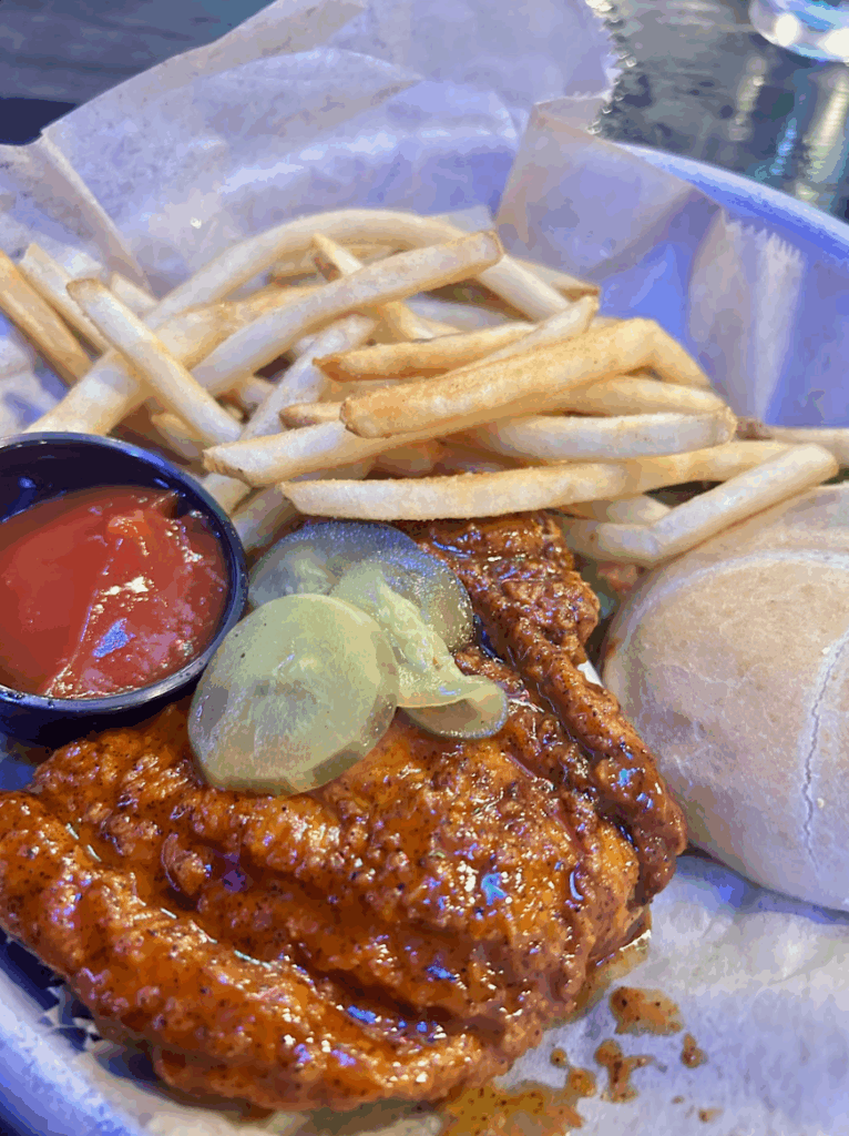 Daily specials make it easy to indulge. Wing night offers 12 wings for $12 or 18 for $18, plus a host of other great deals. The Daily Features didn’t disappoint either. I went with a Nashville Hot Chicken Sandwich, but they also had a Crispy Fish Sandwich and other fun options to shake things up.