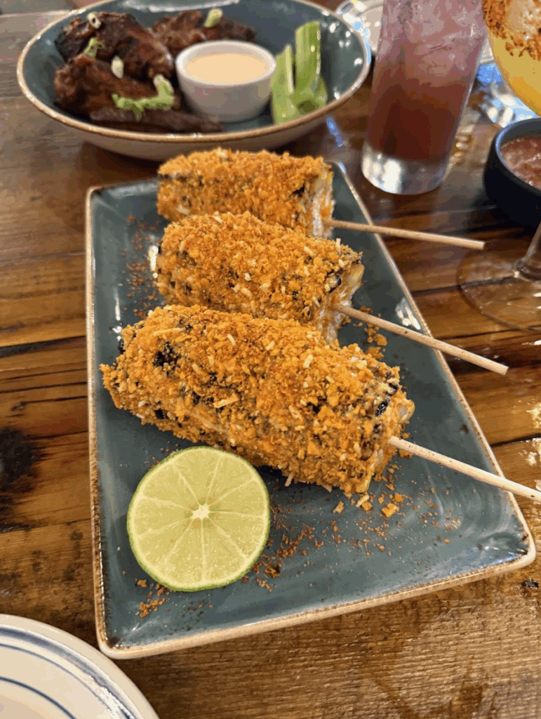Smoky-sweet corn on the cob slathered in queso fresco, chili salsa, and lime. One bite and you’ll understand why “locos” means “crazy”—it’s crazy good. - Urbano Wings