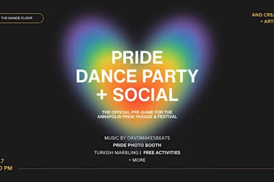 Kick off Annapolis Pride in style! 🎉 AND Creative Gallery and ArtFarm Studios are teaming up to host the official pre-game for the rescheduled Annapolis Pride Parade & Festival. Join …