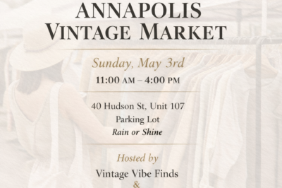 Annapolis Vintage Market – Curated Vintage Market Sunday, May 3rd 11am-4pm 40 Hudson St Unit 107 Parking Lot 25 Vendors Food Trucks Musician Free parking on Hudson St Rain or …