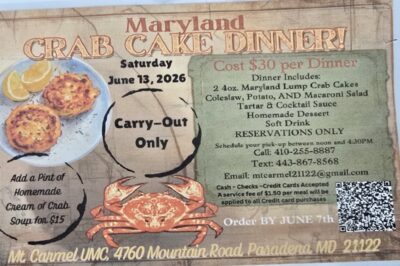 My little church Mt Carmel United Methodist Church In Pasadena is having their Crab Cake Fundraiser. We will be cooking these for you that day. Please order in advance and …
