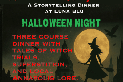 ✨ Witches of Maryland – Dinner at Luna Blu ✨ Step into the shadows of Maryland’s witch trials and whispered legends for an unforgettable Halloween evening at Luna Blu Ristorante …