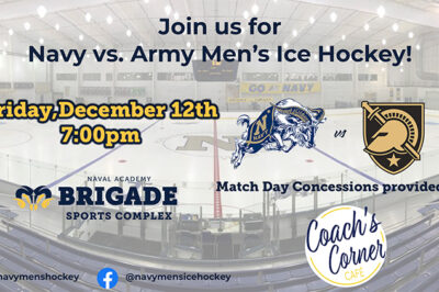 Navy Men’s Ice Hockey vs Army! August 26, 2025 by Alyssa OshiroJoin us at the McMullen Arena at the Brigade Sports Complex for Navy Men’s Ice Hockey as they take on Army! Match day concessions are brought to you by Coach’s … Read MoreNavy Men’s Ice Hockey vs Army!