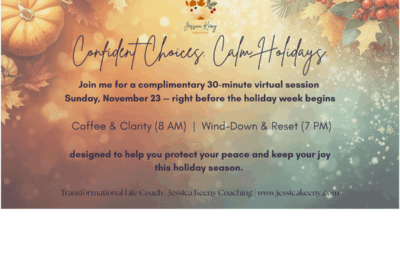 Confident Choices, Calm Holidays Two Supportive 30-Minute Sessions — A Seasonal Gift to the Community Hosted by Jessica Keeny Coaching What it’s about: As the holidays approach, many women feel …