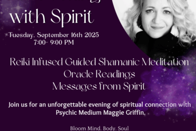 Experience an unforgettable evening with Intuitive Psychic/Medium Maggie Griffin! Join us for an intimate gathering that will include a Reiki Infused Guided Shamanic Meditation, Oracle Readings and Messages from Spirit. …