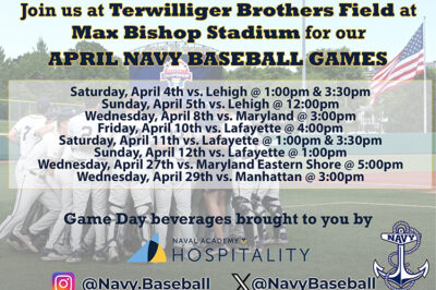 Join us at Terwilliger Brothers Field at Max Bishop Stadium for Navy Baseball as they take on Lehigh! Double-header on Saturday April 4th and one game on Sunday, April 5th. …