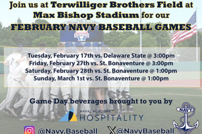 Join us at Terwilliger Brothers Field at Max Bishop Stadium for Navy Baseball as they take on Delaware State! Game Day beverages brought to you by Naval Academy Hospitality. Games …