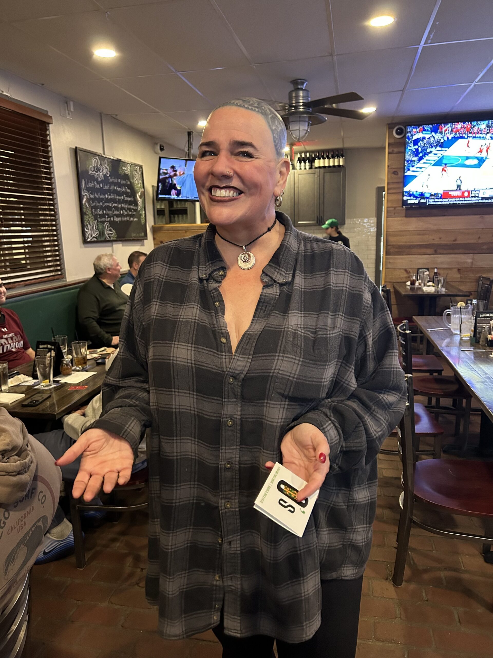 O’Loughlin’s in Arnold is another popular trivia night where you should get there early. (Don’t worry, I did this time.) Tables are not promised, so everyone is added to a waitlist. The event takes place in two areas separated by a wall, but the strategically placed speakers make it easy to hear the questions. If you’re lucky, you’ll get a cozy spot by the fireplace. If you’re luckier, you’ll get to sit near Amanda, who runs the trivia game. She’s not part of a larger company, so she comes up with the questions herself. There’s a good mix of challenging and knowable questions for those who pay attention to the world. And she drops Easter eggs and hints throughout. She’s both close with regulars and instantly welcoming to new players.